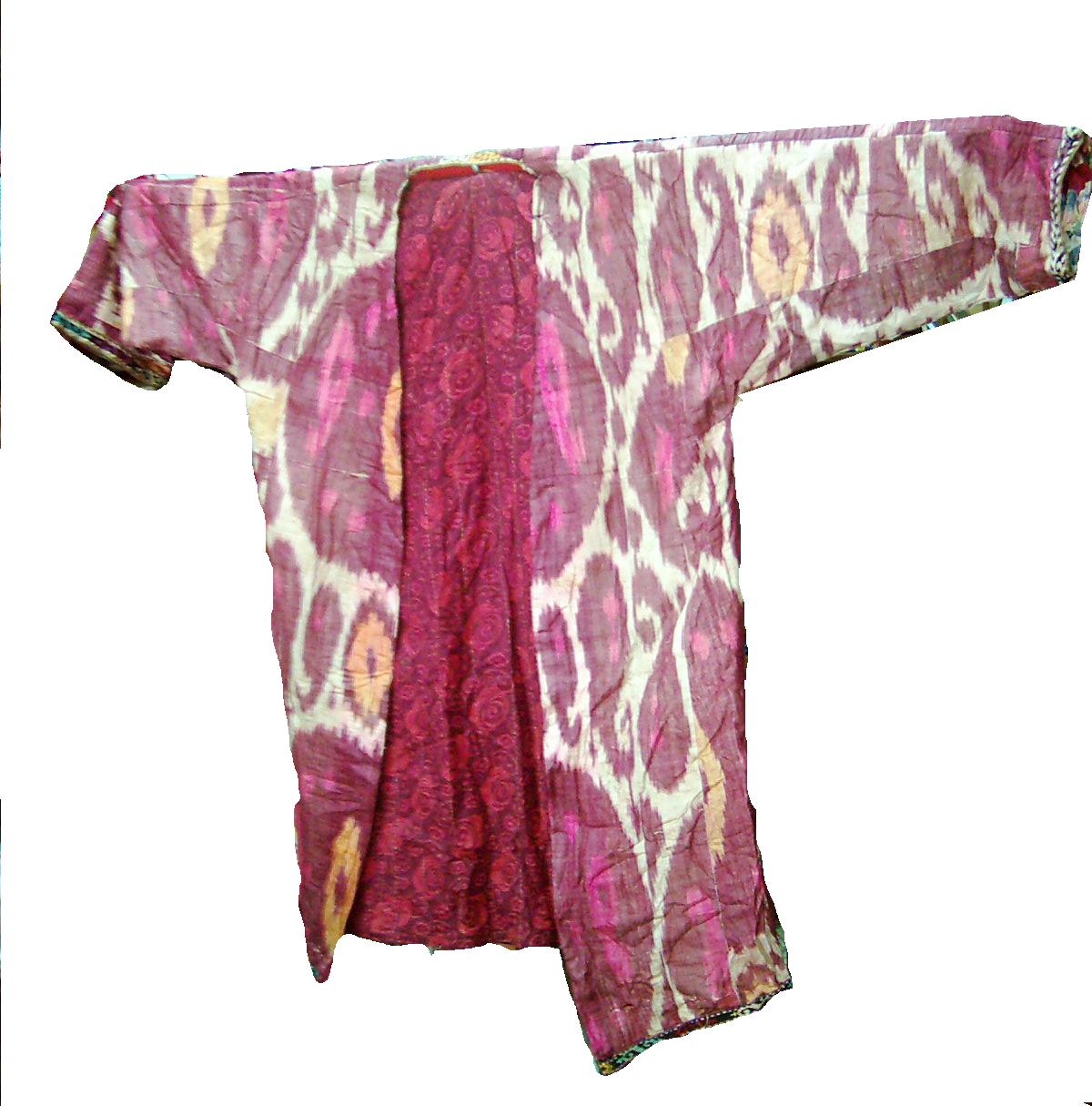 OLD TRIBAL AND NOMADIC CENTRAL ASIAN JACKET, HAND MADE WITH FINE OLD RELIGIOUS HOLLY COLOURS. THIS JACKET IS USED BY TRIBAL DERVICH LEADER IN DAILY LIFE, MARRIAGE AND RELIGIOUS CEREMONIES WITH ABSTRACT RELIGIOUS MOTIVES AND DESIGNS REPRESENTING THE ORIGINE OF THE PERSON AND HIS TRIBE AS WELL AS WITH MYSTIC DESIGNS ONLY KNOWN BY CENTRAL ASIAN DERVICHE SUFI BROTHERHOOUD. THIS IS AN OLD TRADITION USED TO KEEP THEIR HERITAGE FOLK ART ALIVE IN THEIR RURAL SOCIETTIES FOR THE COMING GENERATION. |