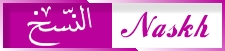 Naskh is usually written with short horizontal stems -- and with almost equal vertical depth above and below the medial line. The curves are full and deep, the uprights straight and vertical, and the words generally well spaced. Currently, Naskh is considered the supreme script for almost all Muslims and Arabs around the world. |